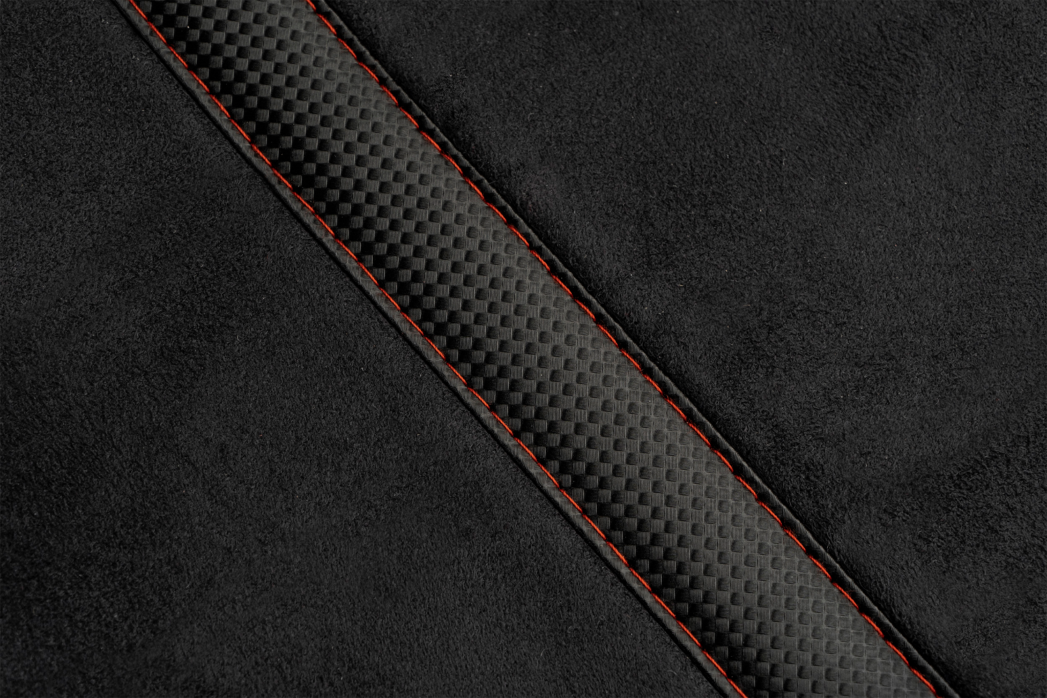 on the top and sides, black micro suede in the centre section with a carbon