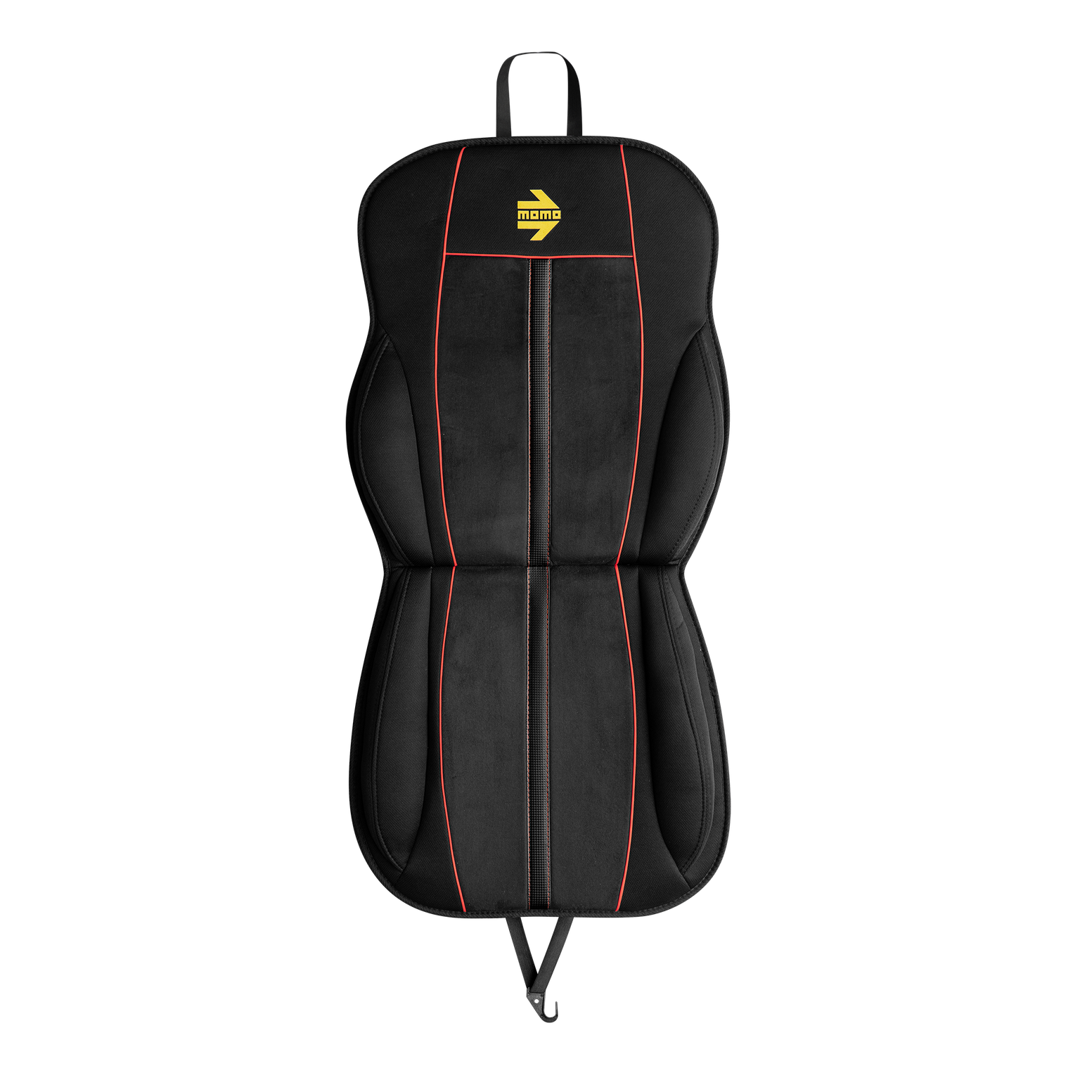 stripe and red stitching. It is finished with the iconic yellow MOMO arrow