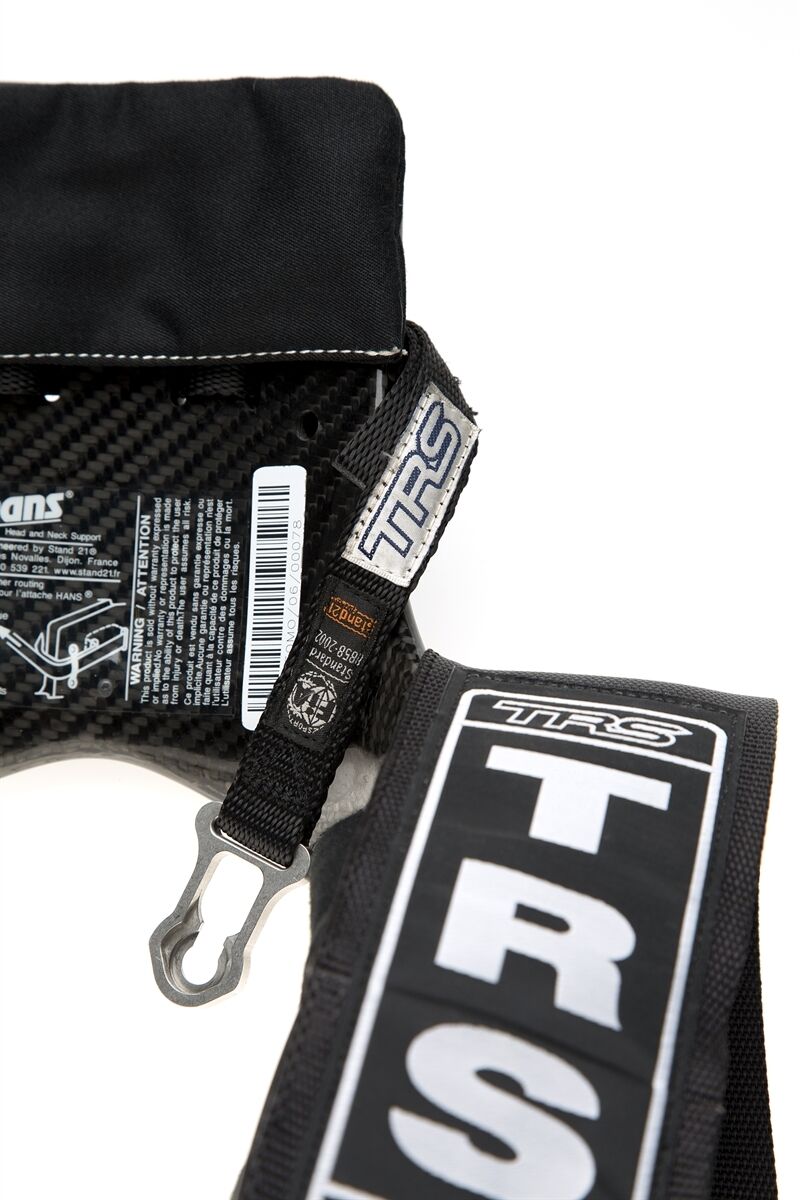 TRS' light weight 140 gram quick release buckle is of composite construction and is attached to the crutch strap on 5 and 6 point harnesses. Innovative features such as, a securing tab for intercom cables on the shoulder strap, thumb loops on lower shoulder straps and Velcro patches on lap straps were all pioneered by TRS and are standard on all of our competition harnesses.