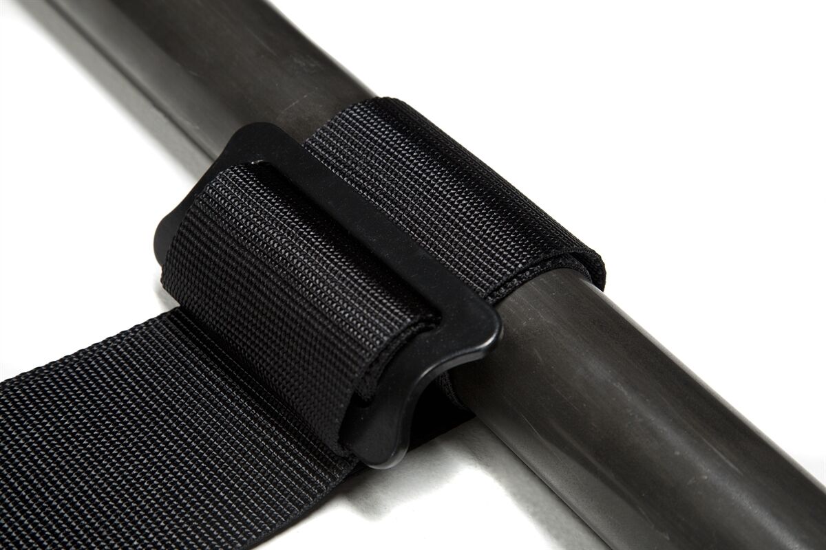 It has steel anti-creep adjusters and snap hook fixings all round. The shoulder straps can be wrapped around the roll cage if required.